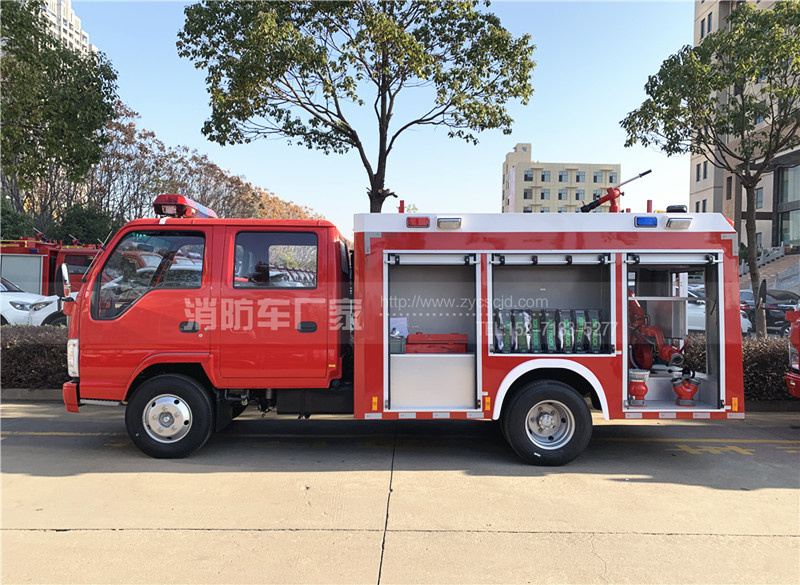 五十鈴3噸水罐消防車,五十鈴120馬力發(fā)動機,底盤型號:QL1070BUKWY,發(fā)動機型號:4HK1CN6LB,7.00R16輪胎,紅色雙排駕駛室,軸距:3815mm。罐體容積:3噸水,配備上海茸申CB10/20消防泵,成都威斯特PS20消防炮,紅色警燈,整車消防紅。水射程:≥50m。