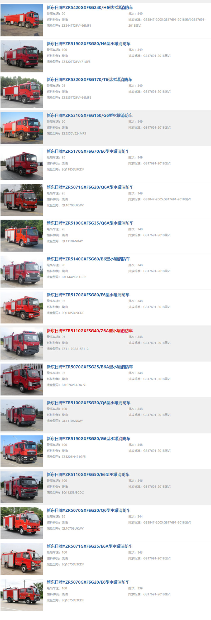以上是所有17款水罐消防車公告,包含了車型的整車型號,最高車速,底盤型號,公告批次,更多水罐消防車詳細參數(shù)資料歡迎來電咨詢152-7133-5277.