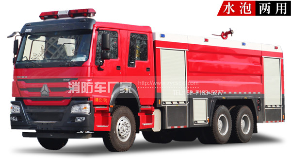 泡沫消防車與水罐消防車結構相似,除相同部分外,泡沫消防車主要增添了泡沫液罐、泡沫比例混合裝置、空氣泡沫一水兩用炮及其它附加裝置等。