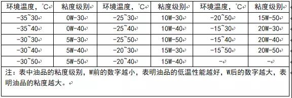 不同環(huán)境溫度適應(yīng)的機(jī)油粘度級(jí)別